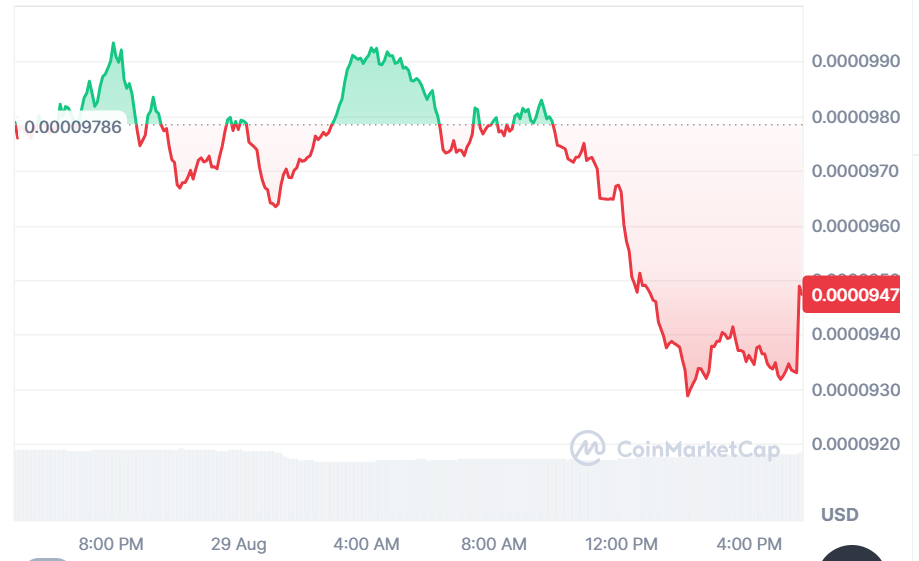 FLOKI continues to prove itself as one of the most resilient meme coins of this cycle. Trading today at $0.000098 with a market cap of $932.40M and a 24-hour trading volume of $82.49M, it has seen a +3.42% gain in the last 24 hours. With 9.53 billion tokens in circulation, FLOKI maintains high visibility and liquidity.