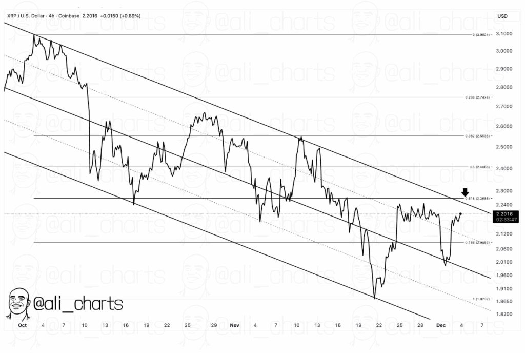 Despite this decline, market analyst AliCharts believes a bullish breakout is still possible. According to his assessment, if XRP can break past $2.28, the token could open the door to a stronger rally toward $2.75, a level that would mark a significant shift in its trajectory.