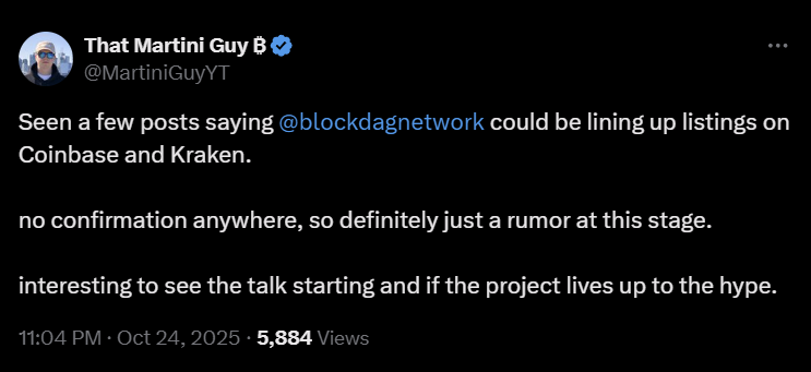 When That Martini Guy mentioned whispers of BlockDAG (BDAG) heading toward Coinbase and Kraken, many thought it was another viral tease. But the following leaks told a far more concrete story. Circulating documents show tangible evidence that both leading exchanges are already preparing structured cooperation with BlockDAG, pointing to an advanced stage of listing preparations.