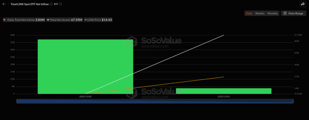 Chainlink spiked 18% on December 3rd, hitting $14.38 after Grayscale launched the first US Chainlink ETF on NYSE Arca. The ETF charges no management fees, uses Coinbase for custody, and is already live on Fidelity and Robinhood.