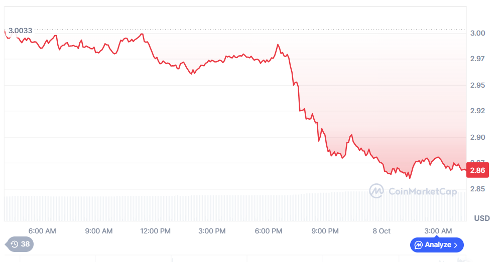 XRP’s recent price movement shows the token under $3. Market feeds show XRP hovering around the $2.80–$3.10 range this October as traders position ahead of regulatory and ETF-related XRP news.