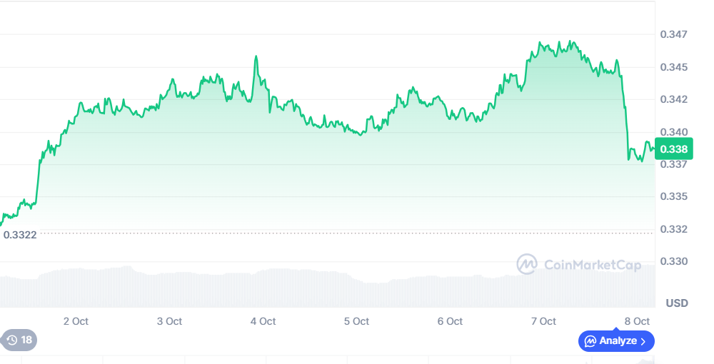 TRON attracts users mainly for high throughput and entertainment-focused dApps. However, the competition in this category is increasing massively. TRX recently showed a breakout above near-term resistance, trading around $0.34-$0.35.