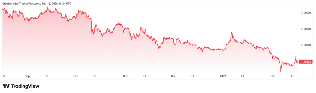 Ripple (XRP) remains a major player in the world of cross-border payments. As of February 2026, XRP is trading at approximately $1.50, with a market capitalization exceeding $85 billion. While it has a loyal following and institutional partnerships, its price action has been sluggish compared to newer assets.