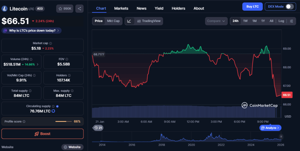 The overall market slide, triggered by bond market anxiety and rising trade concerns, has hit older cryptocurrencies harder than many expected. Litecoin tracked Bitcoin’s decline rather than acting as a stabilizing asset. Analysts caution that unless the Litecoin price can recover above $70 soon, negative momentum may persist, leaving market participants cautious and patient.
